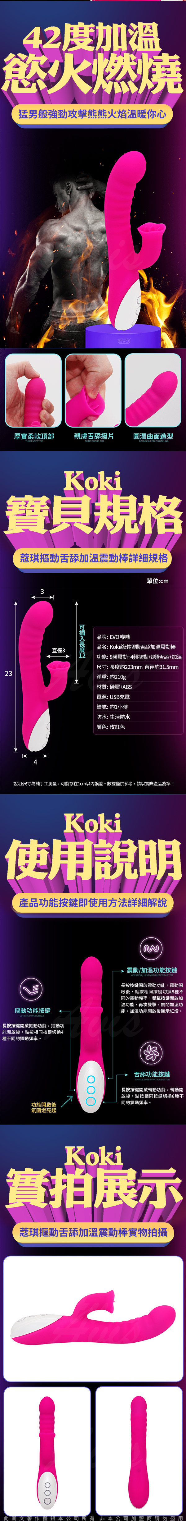 .主商品:EVO-Koki蔻琪 智能加溫 舌舔 摳動 震動按摩棒