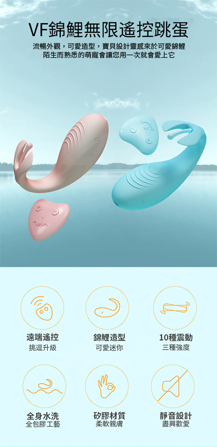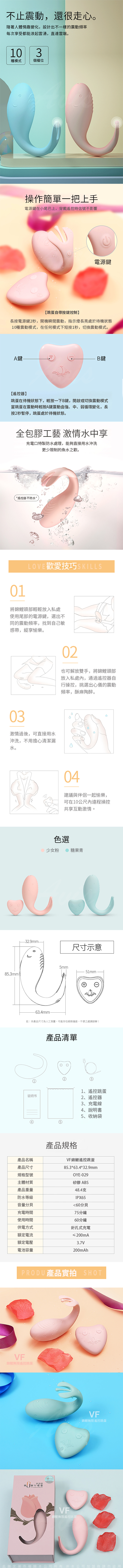 .主商品:VF錦鯉 3檔+10段變頻震動陰蒂G點矽膠跳蛋-粉