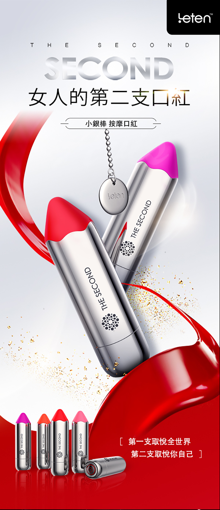 .主商品:Leten-小銀棒 10段變頻 無線充電防水口紅跳蛋 紫外線抑菌座充