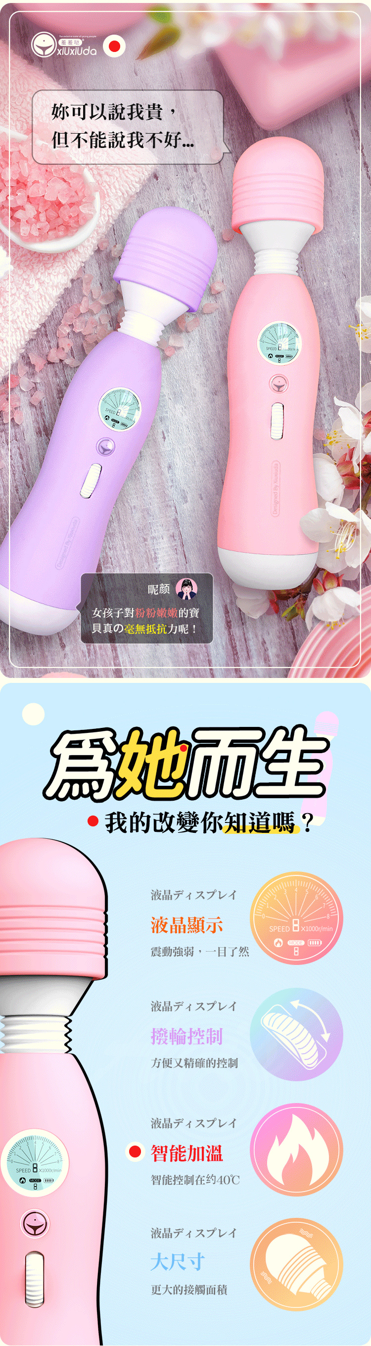 .商品名稱:香港久興-羞羞噠 8x8變頻加溫液晶AV震動按摩棒