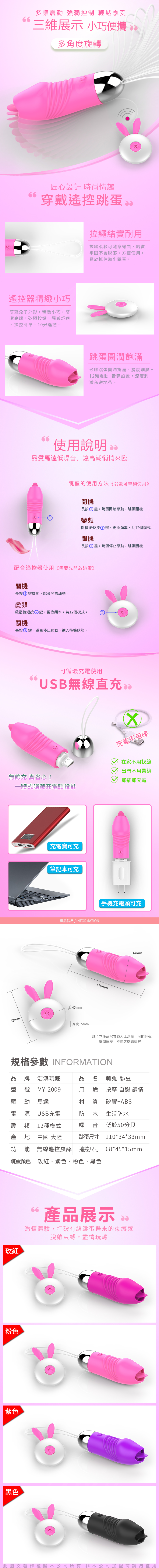 .商品名稱:萌兔舔豆 12段變頻舌舔矽膠充電遙控震動跳蛋