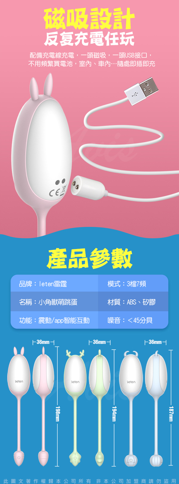 .商品名稱:香港LETEN 萌寵派對 小角獸 16段變頻 APP遙控 性愛無線跳蛋 智能版