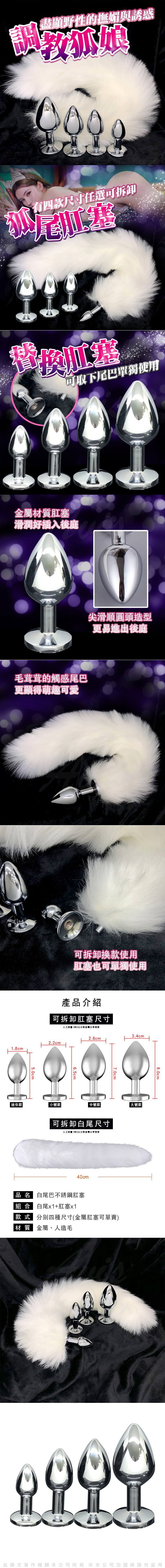.商品內容:純白 可拆卸分離款 狐狸尾巴肛塞 SM情趣用品-大 3.4cm