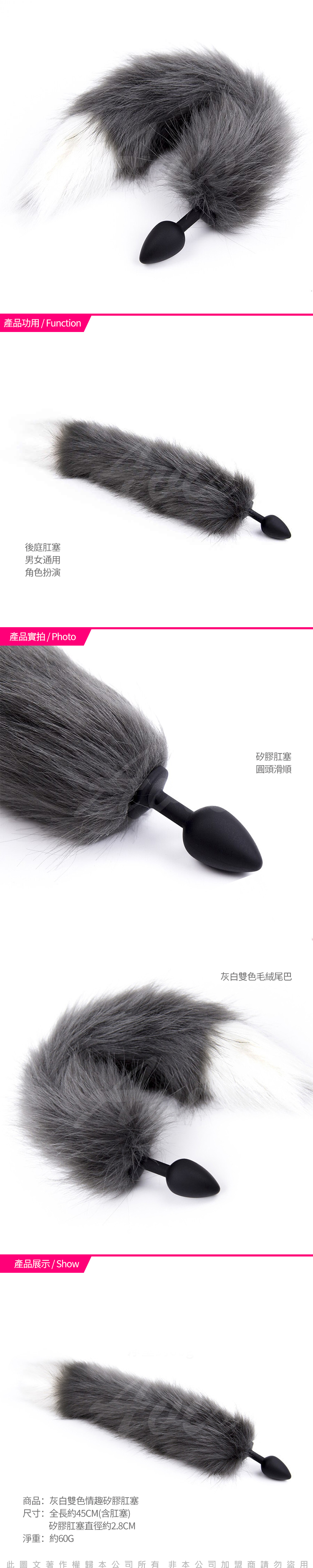 商品名稱:灰白 狐狸尾巴 雙色情趣矽膠肛塞