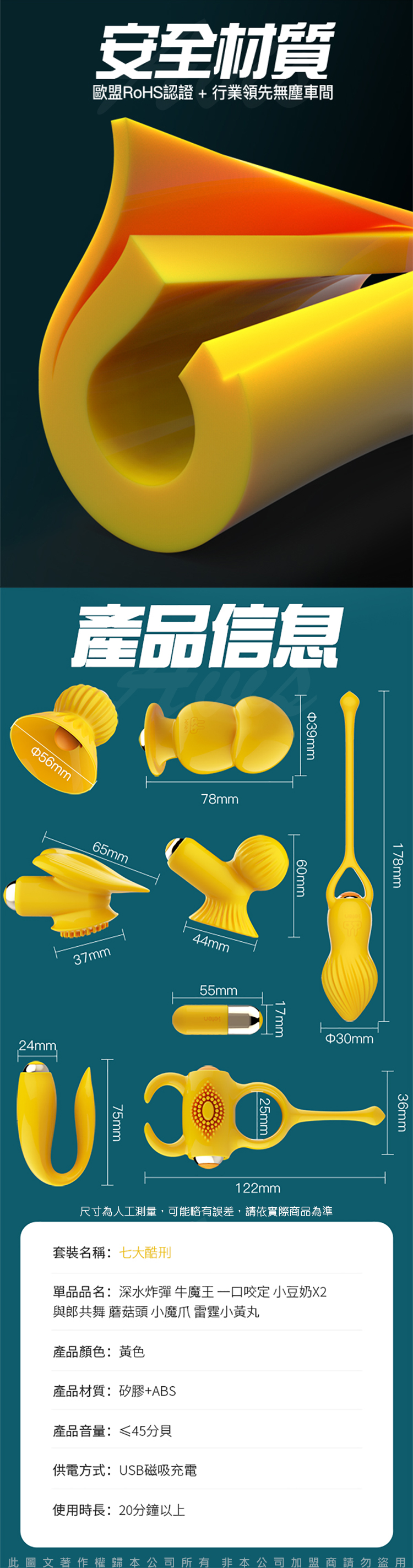 G點小黃蛋+時間鎖精環+吸乳器x2+全身撫摸器+蘑菇肛塞