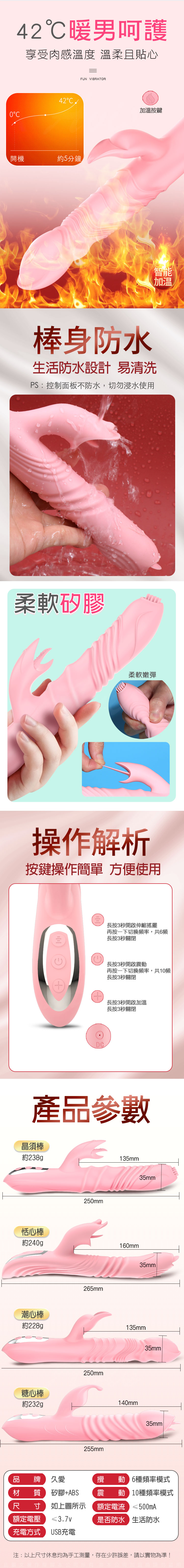 商品名稱:久愛-晶須棒 觸鬚 10頻震動 舌舔加溫按摩棒