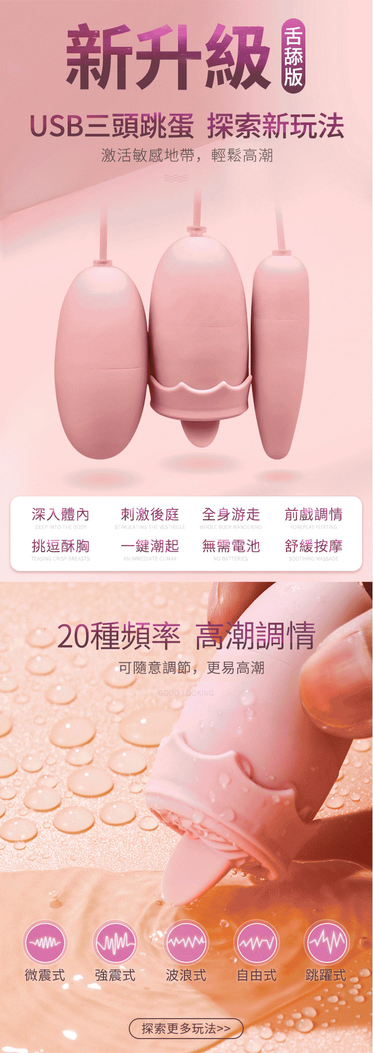 GALAKU-阿卡麗 三頭舌舔跳蛋 USB即插即用快感跳蛋-粉