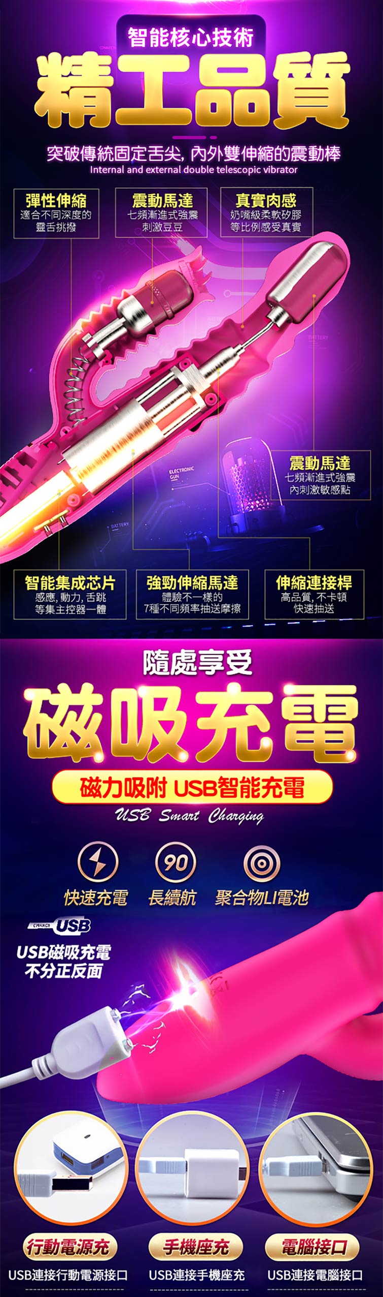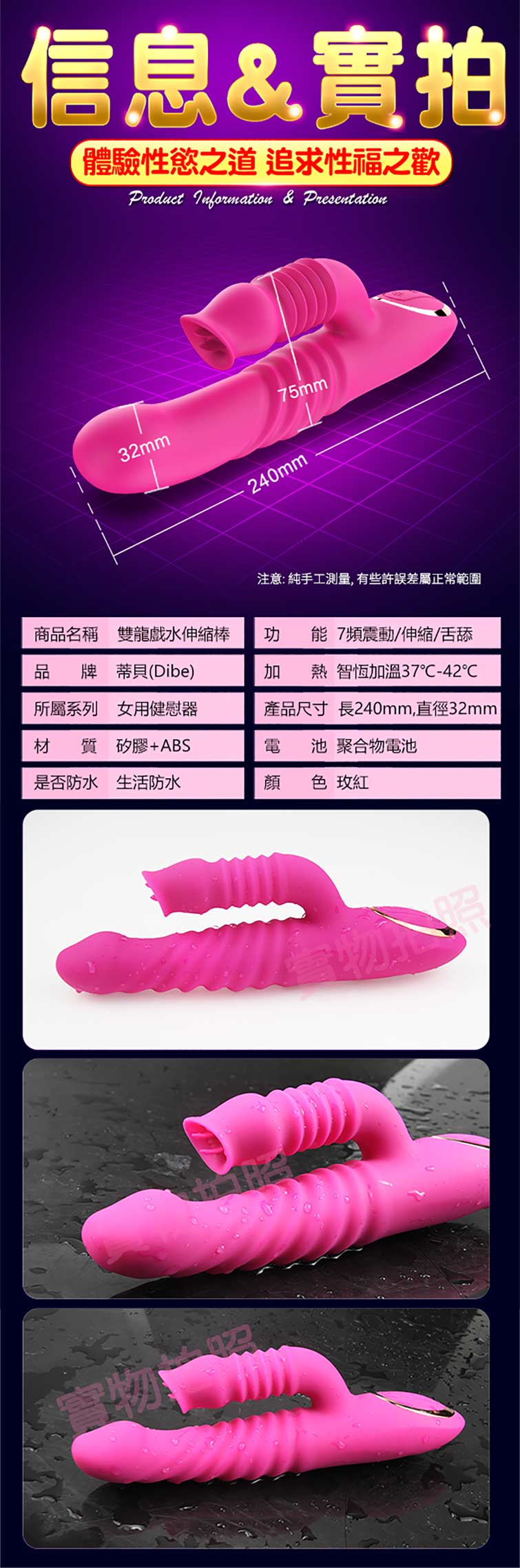 商品名稱:Dibe-雙龍戲水 7段變頻雙伸縮靈舌震動加溫矽膠按摩棒