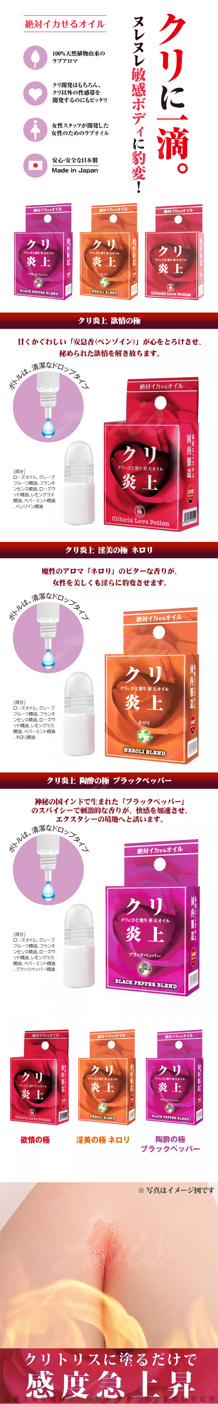 添加神奇香氣“橙花油”的苦味使女性美麗又下流。適量塗抹於嬌嫩部位,輕輕按摩。瞬間潮熱100%植物萃取和天然萃取的稀有精油混合而成的愛情香氛
