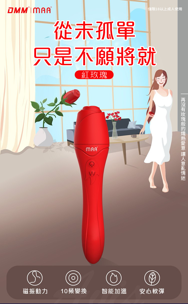 產品名稱:DMM-玫瑰棒 10段變頻 磁震動力加溫軟彈矽膠按摩棒