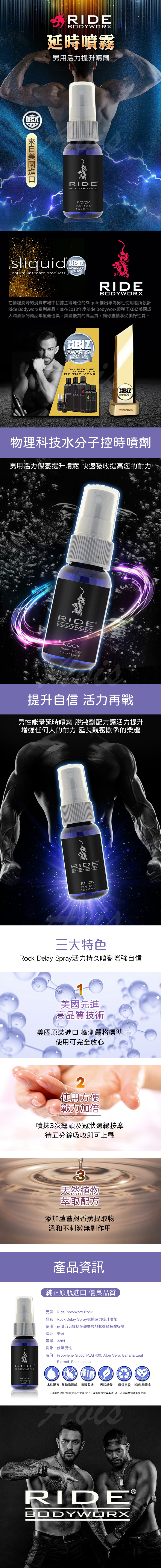 品名:RIDE|ROCK 延時噴霧|男用活力提升噴劑 33ml使用:前戲五分鐘抹在龜頭與冠狀邊緣按摩吸收產地:美國容量:33ml