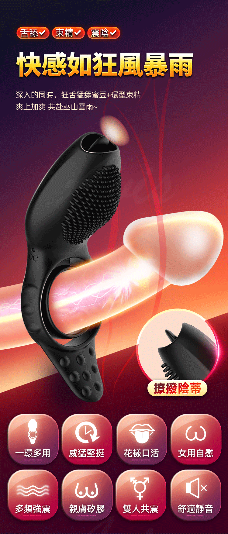 產品名稱:狂舔|舌舔鎖精環|震動環