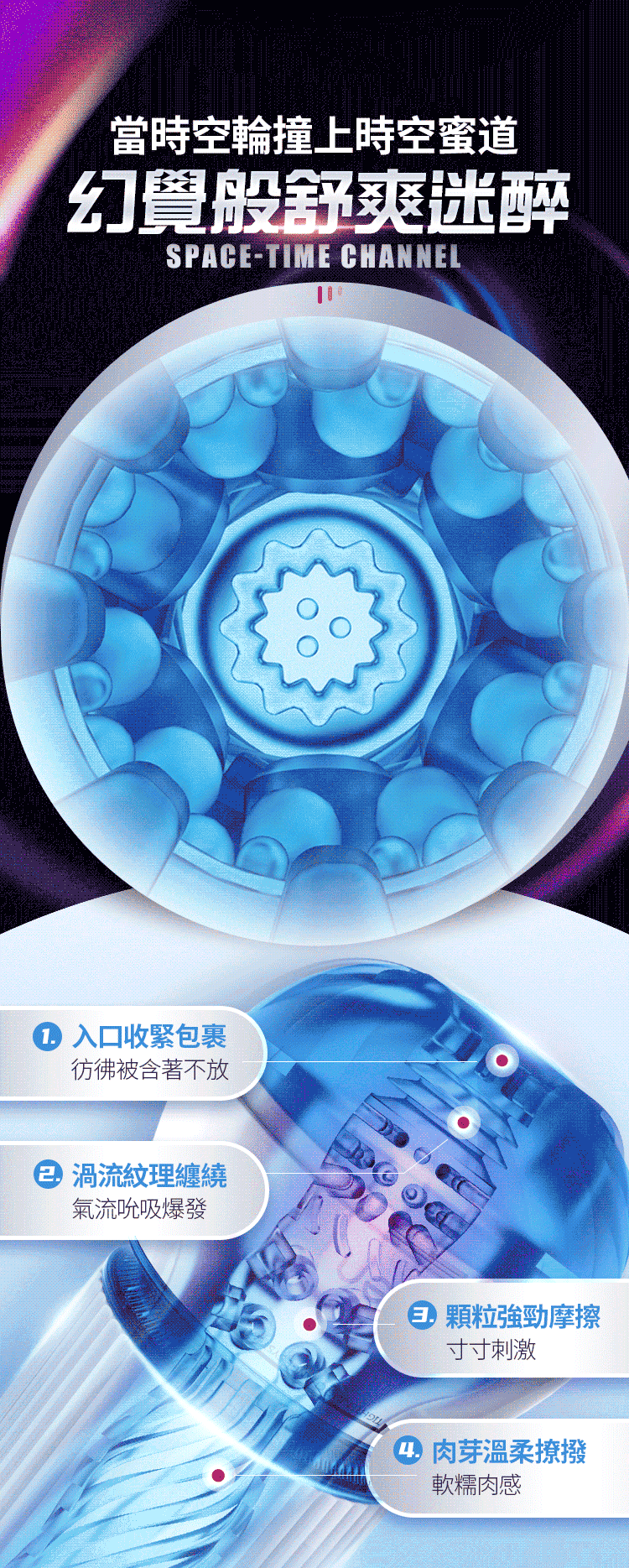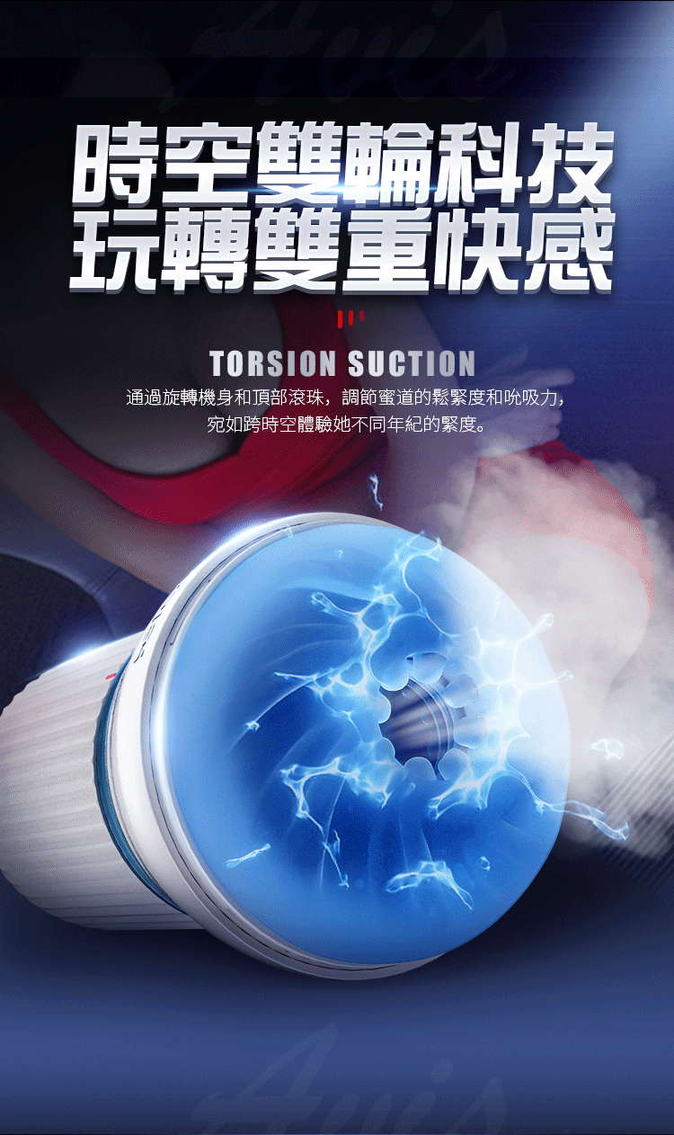 時空扭轉飛機杯旋轉+氣控吮吸榨精雙快感,時空扭轉杯的雙輪設計,無級調節內部緊度與氣壓,同時享受空氣吸吮,與縮陰壓榨的雙重快感。