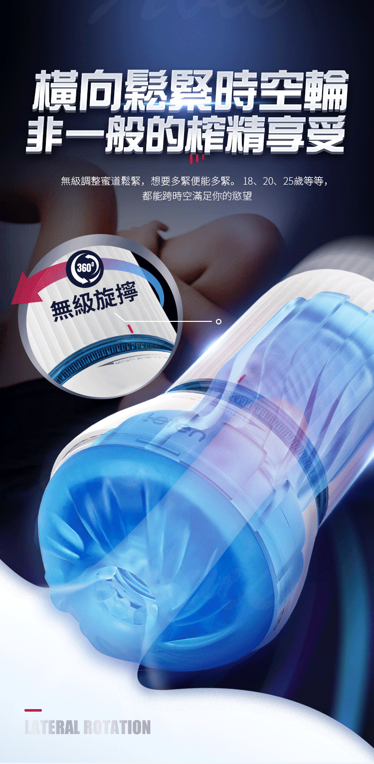 通過旋轉機身和頂部滾珠,調節蜜道的鬆緊度和吮吸力,宛如跨時空體驗她不同年紀的緊度。