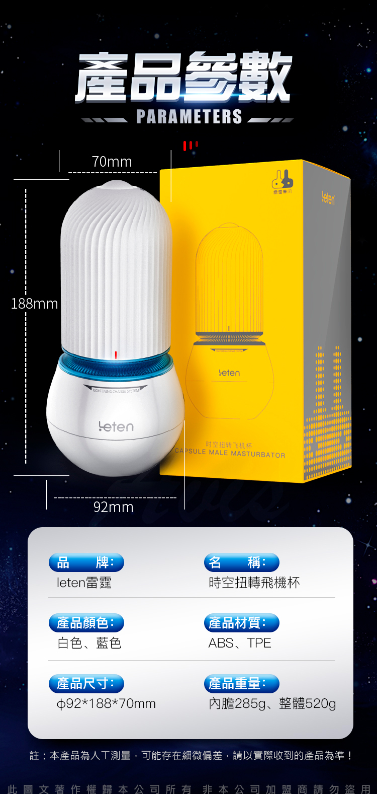 名稱:Leten|時空扭轉|吸吮飛機杯