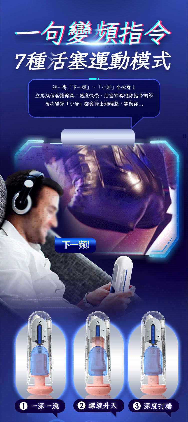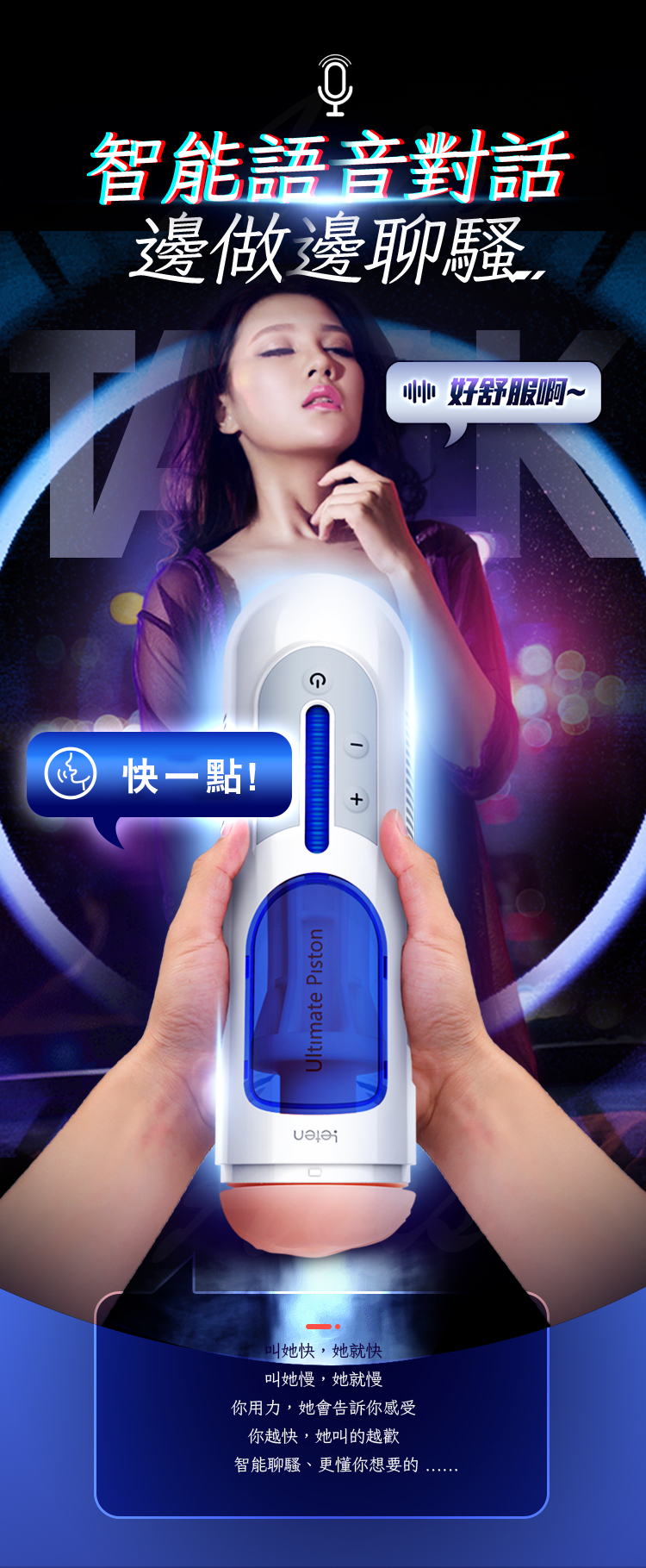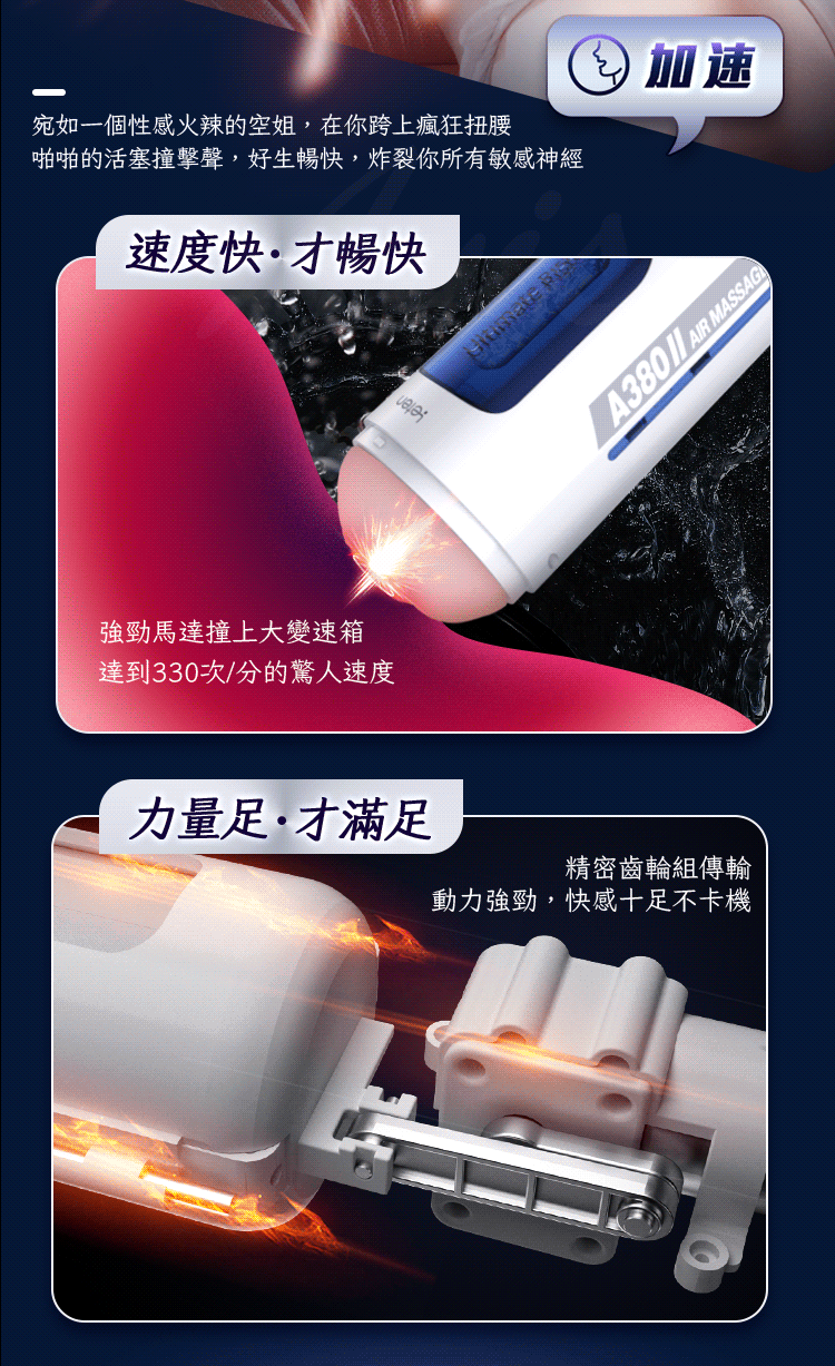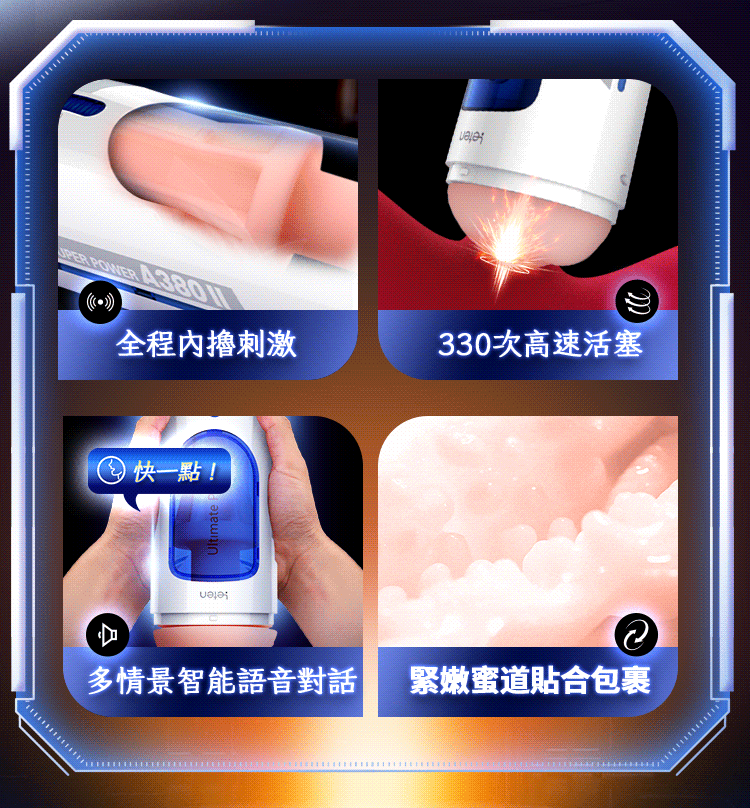 A380二代飛機杯,你只需要下命令,不用手動按鍵就可以完成加速、減速、變頻等一系列操作,一款可以對話的飛機杯,AI智能語音操控,語音控制、語音對話、感應嬌喘,全程內擼刺激,330次高速活塞,多情景智能語音對話,緊嫩蜜道貼合包裹。