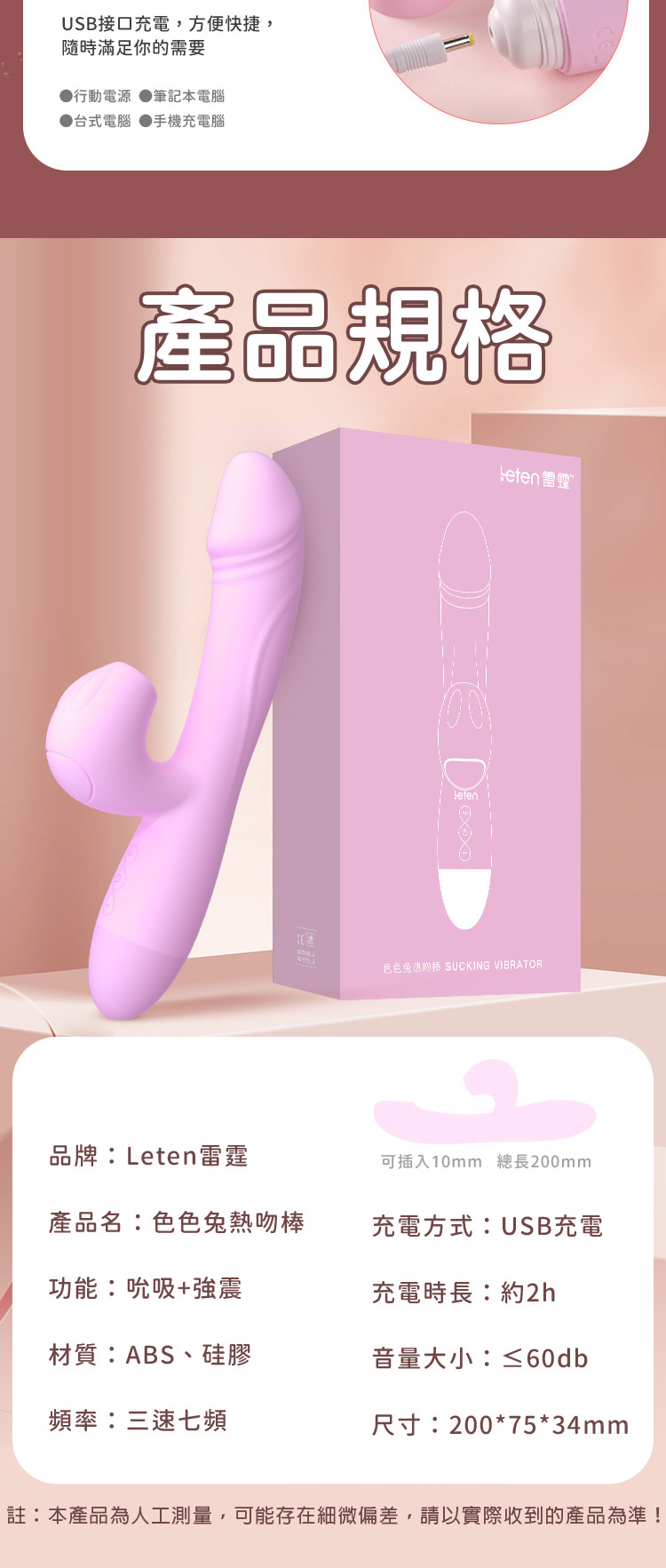 Leten|色色兔熱吻棒|吸吮G點按摩棒