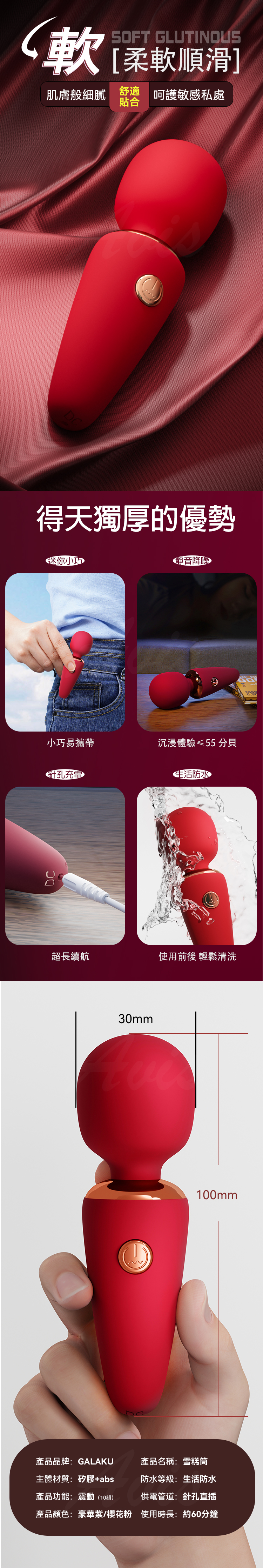 棒頭細膩矽膠,柔軟舒適