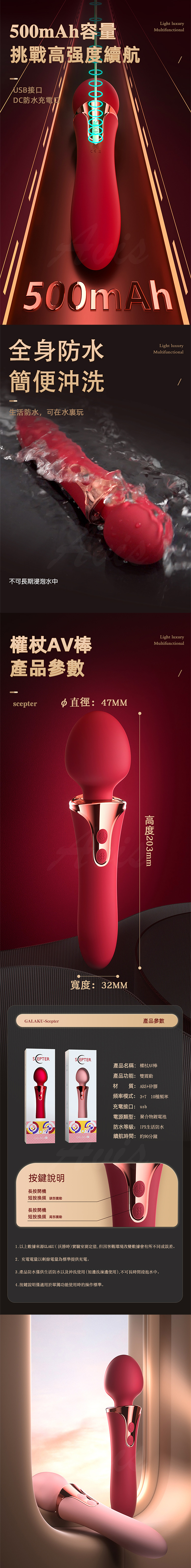 產品名稱:GALAKU|權杖|前震後插AV按摩棒 紅