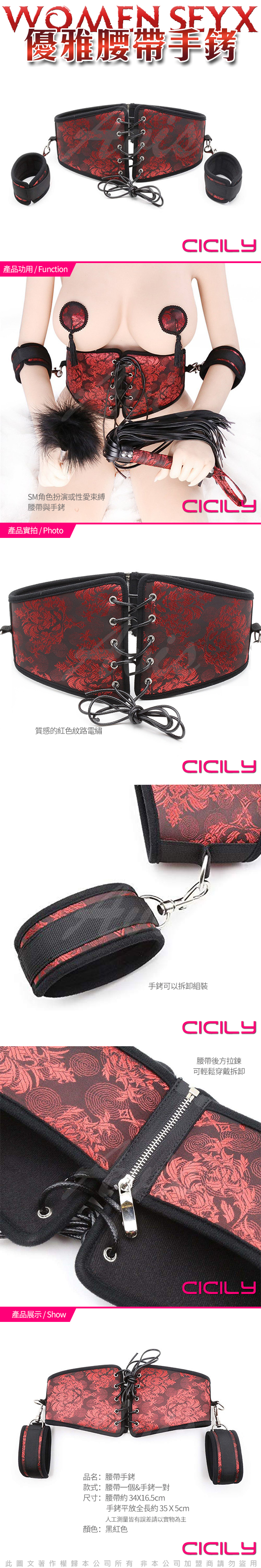 .商品內容:CICILY SM 中國風情趣 優雅束縛 腰帶手銬