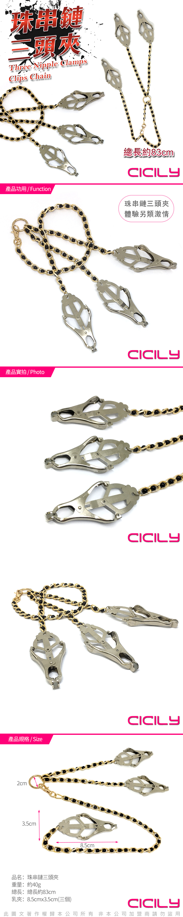 .主商品:虐戀精品CICILY 珠串鏈三頭乳夾