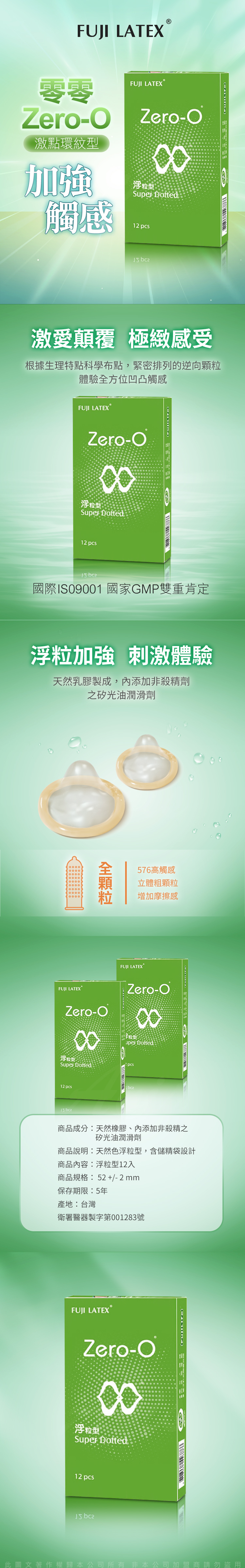 品名:ZERO-0 零零系列|FUJI LATEX 衛生套 保險套|浮粒型 12 入