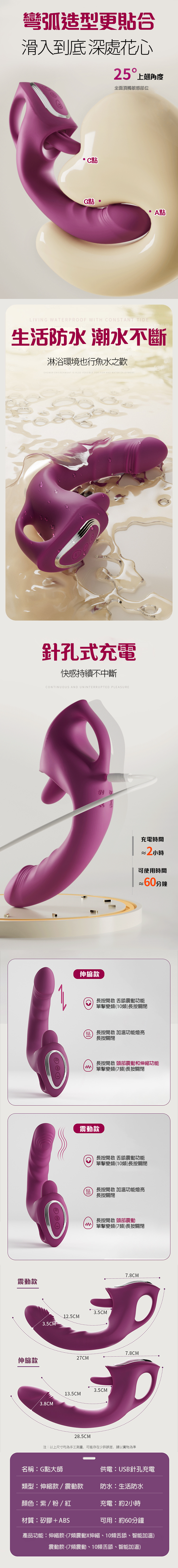 商品功能:10頻舌舔/7頻伸縮/智能恆溫