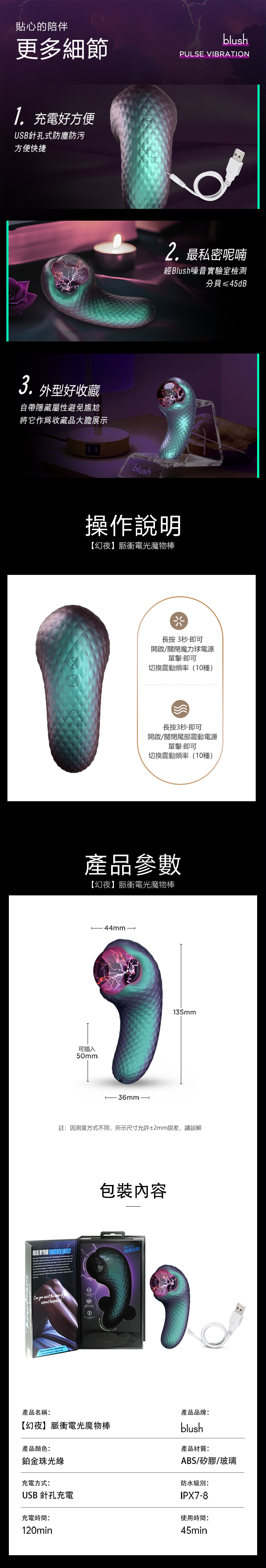 產品名稱:Blush|幻夜|光伏球雙頭按摩棒