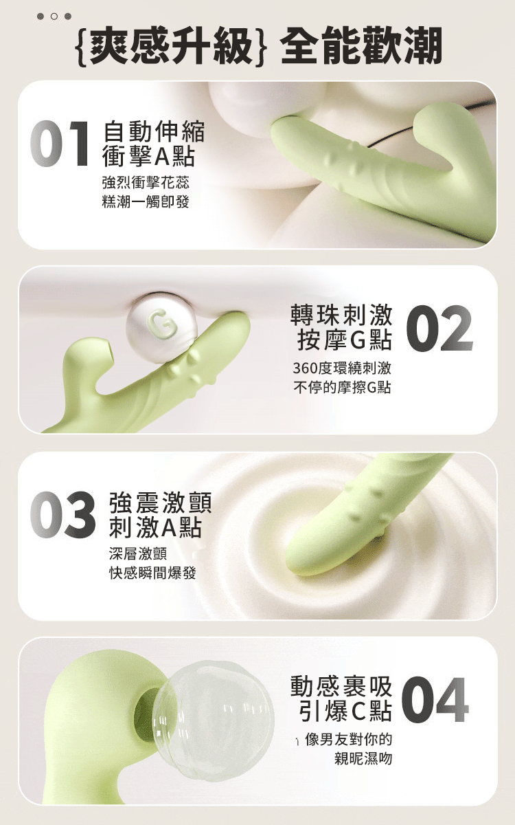 商品名稱:歡潮|轉珠吸吮伸縮|多頻按摩棒