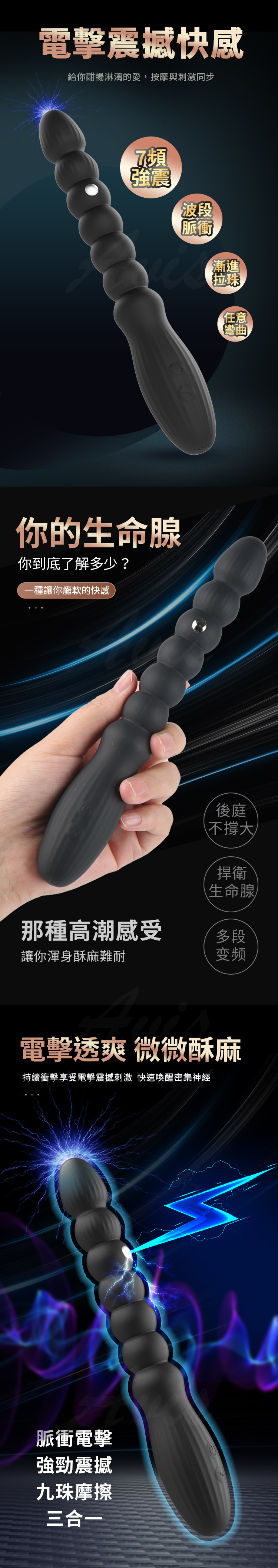 電擊靈陽棒|拉珠後庭棒|後庭電流+震動