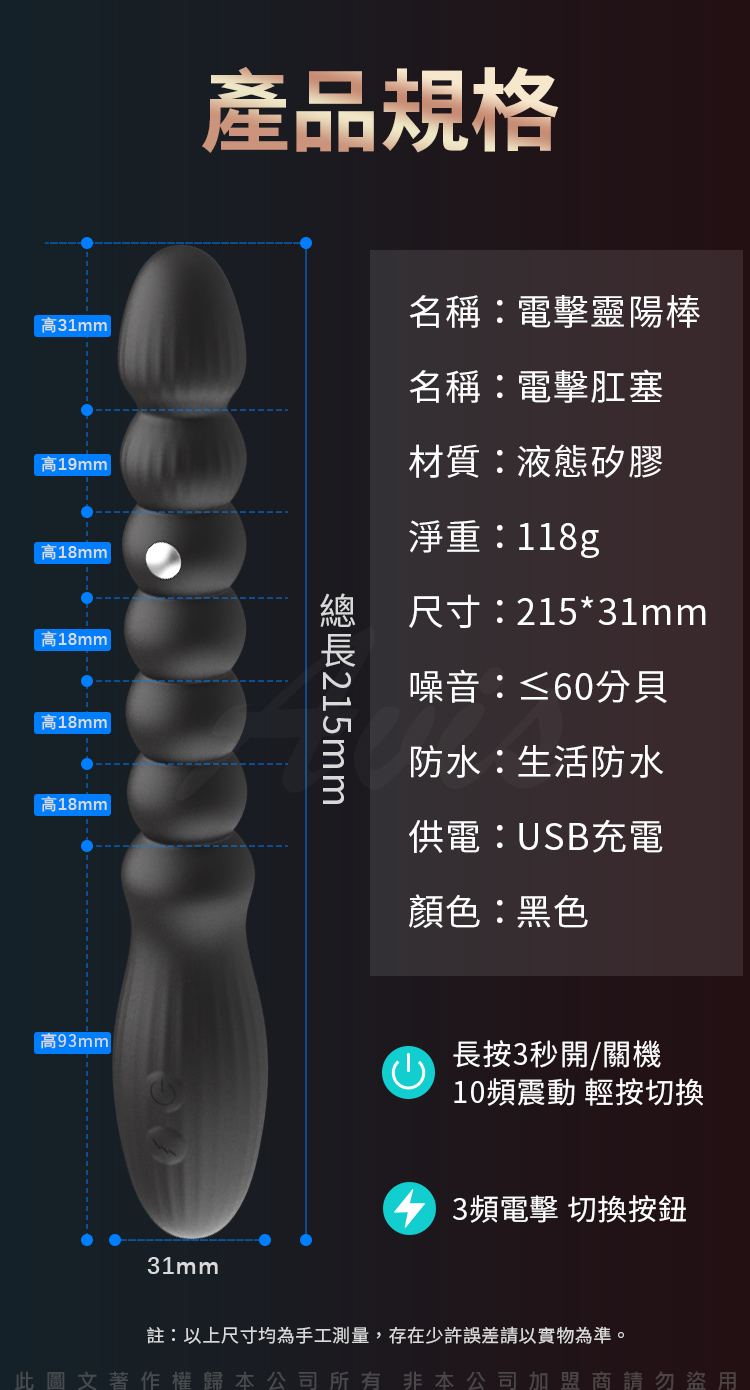 商品名稱:電擊靈陽棒|拉珠後庭棒|後庭電流+震動