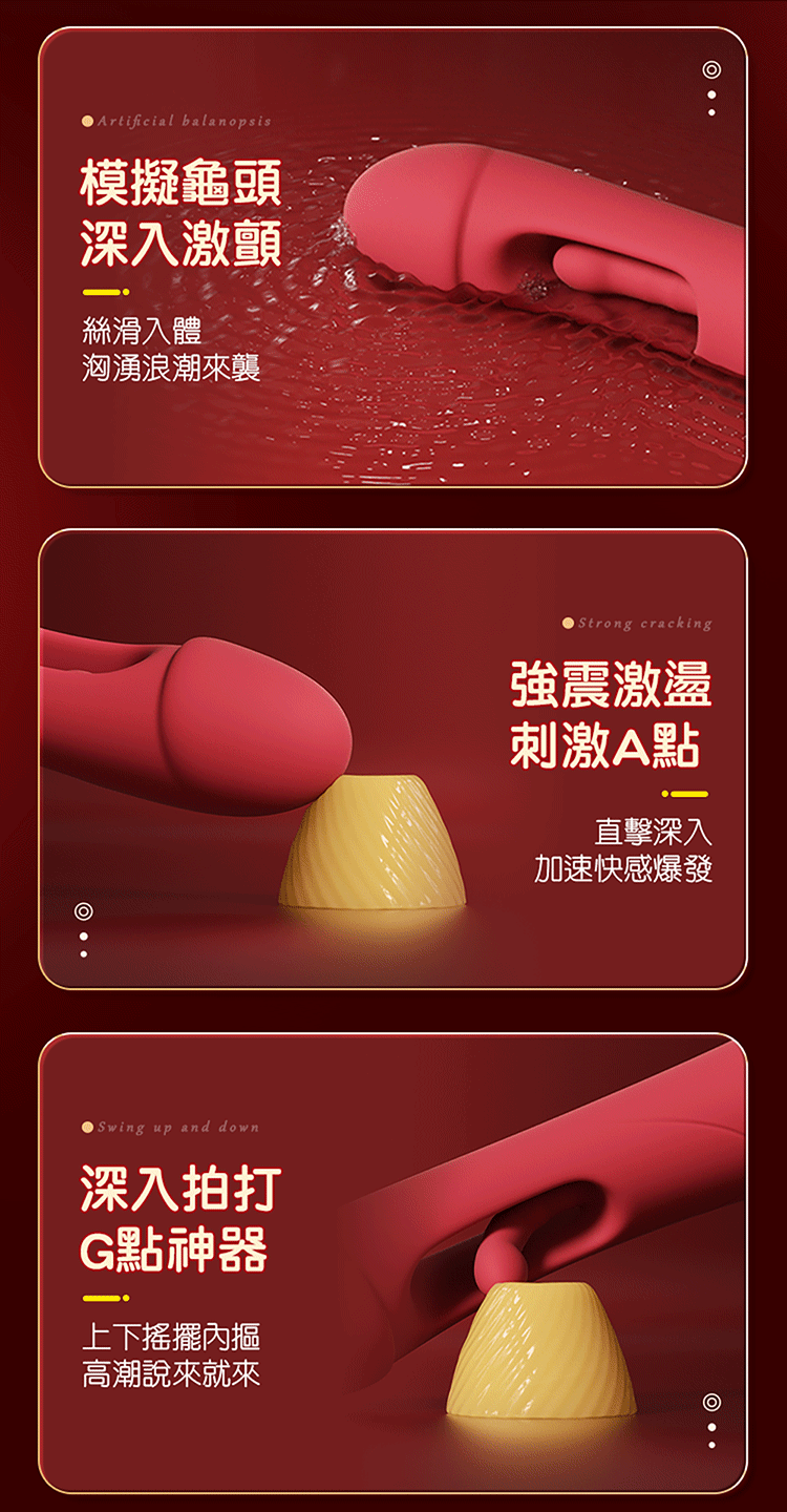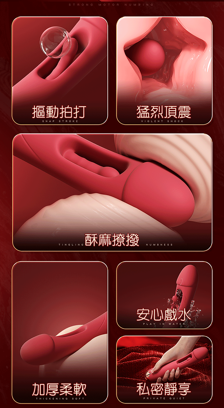 拍打、摳動、顫抖,三種快感集於一棒,只為挑起妳的高潮本能。