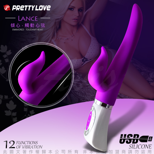 潮吹蛇王 6段變頻矽膠雙叉震動棒 USB充電