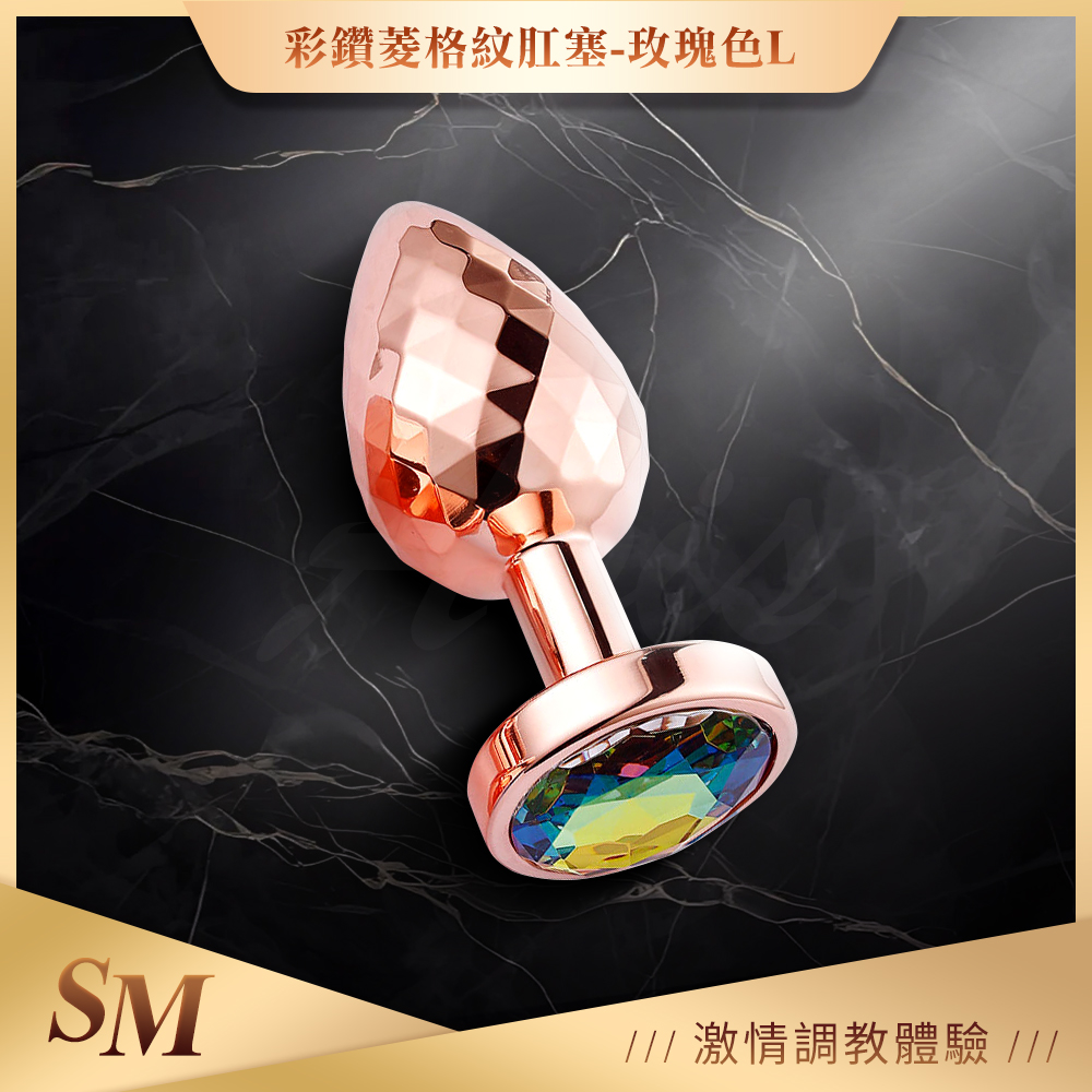 菱狀錐形|金屬後庭肛塞|大 玫瑰金彩色鑽